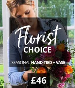 Hand tied bouquet of florists choice seasonal flowers value of £46.00 with vase