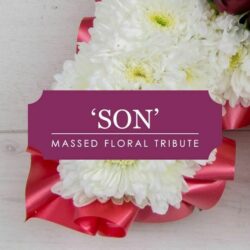 Express your love and remembrance with our Son Tribute Lettering, a heartfelt floral arrangement designed to honour a cherished son. This tribute spells out the word SON in three beautifully crafted letters, creating a dignified and touching display for a funeral or memorial service.