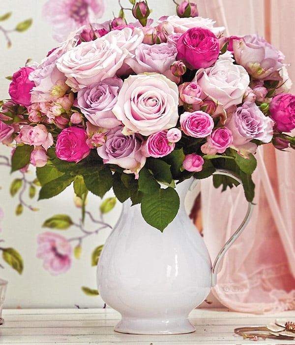 Ultimate Indulgence Bouquet – a luxurious mix of pastel pink and lilac spray roses, hand-tied for Mother’s Day or any special occasion. Pure elegance in bloom.